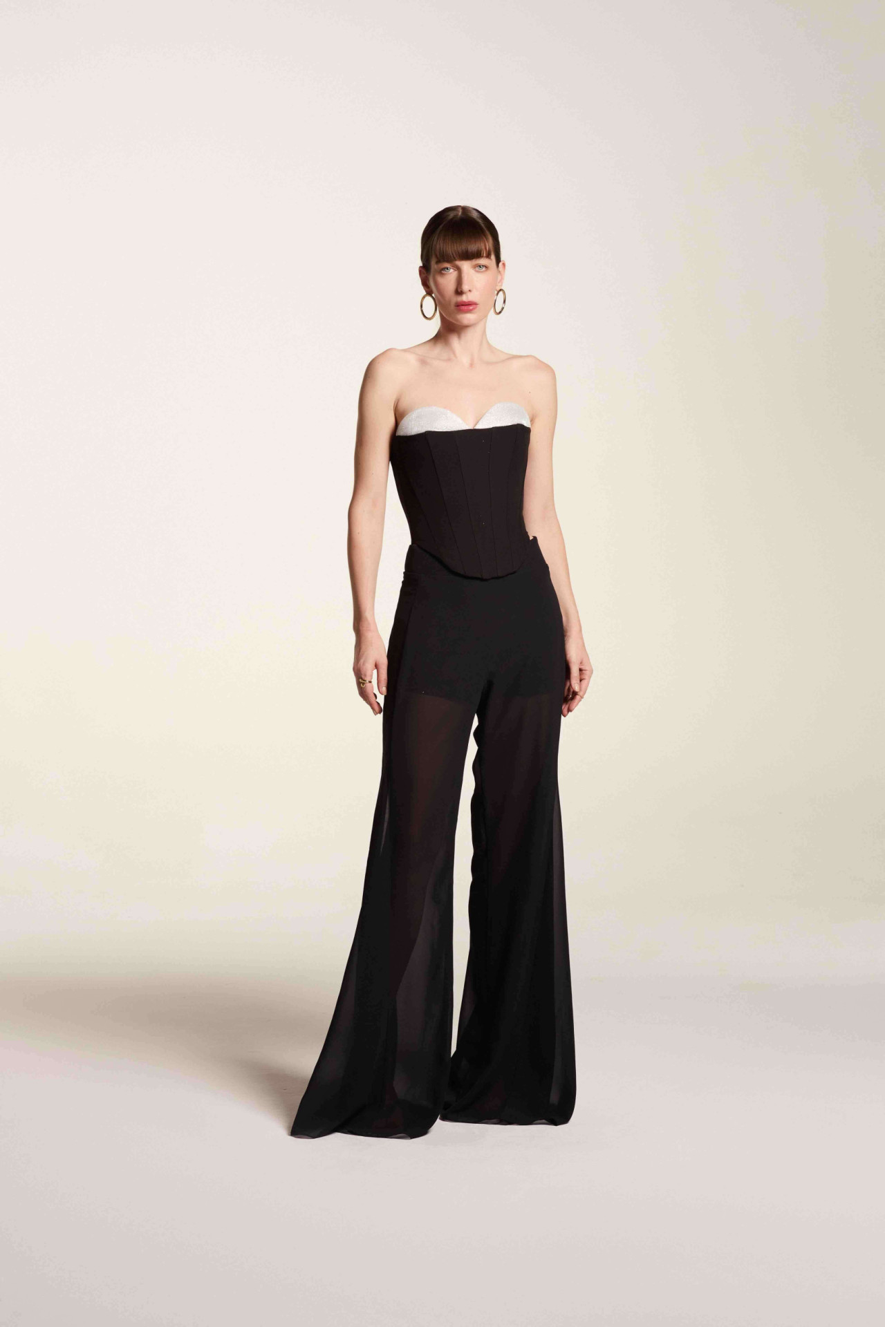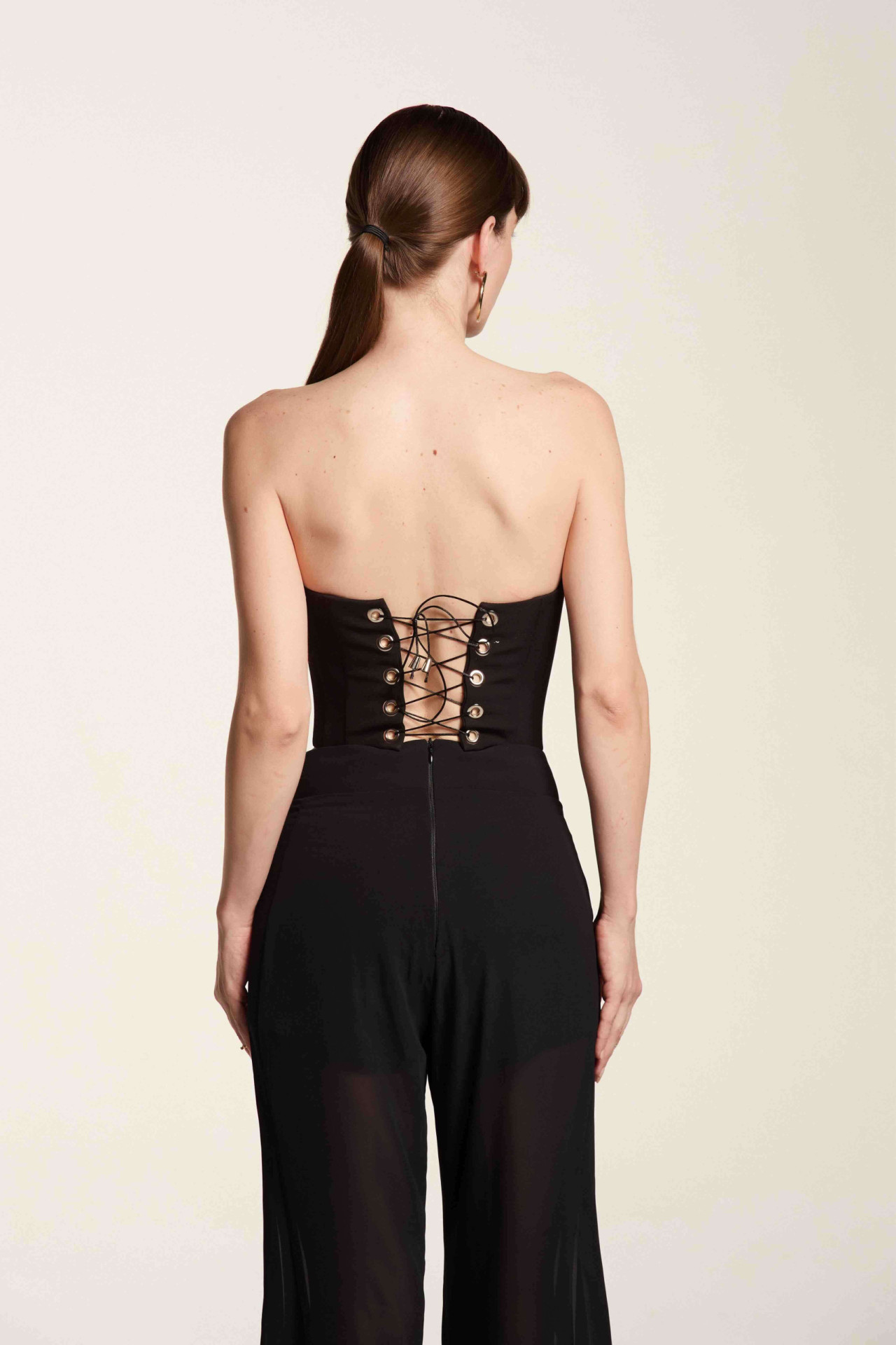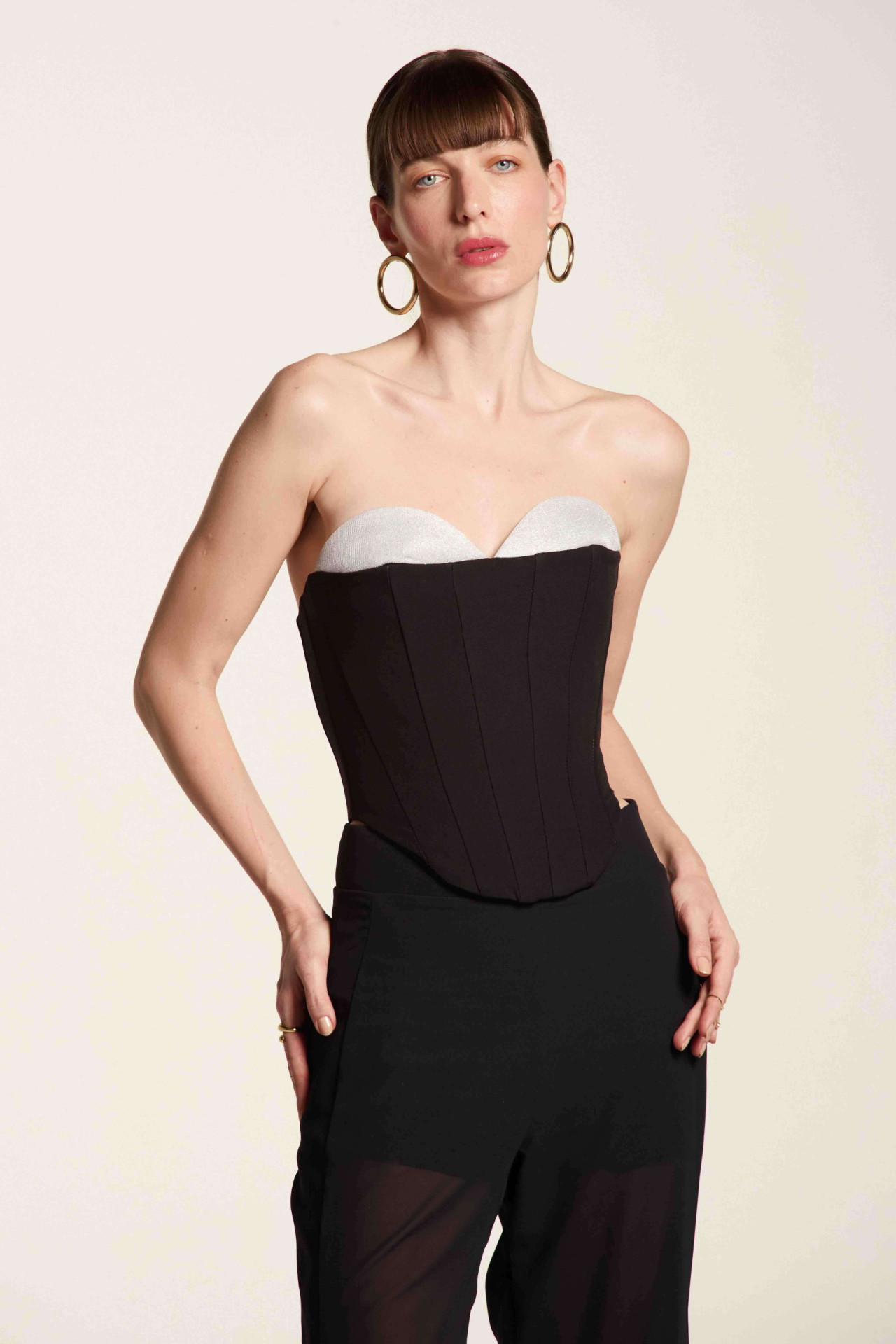 Corset Meia Lua Preto E Prata