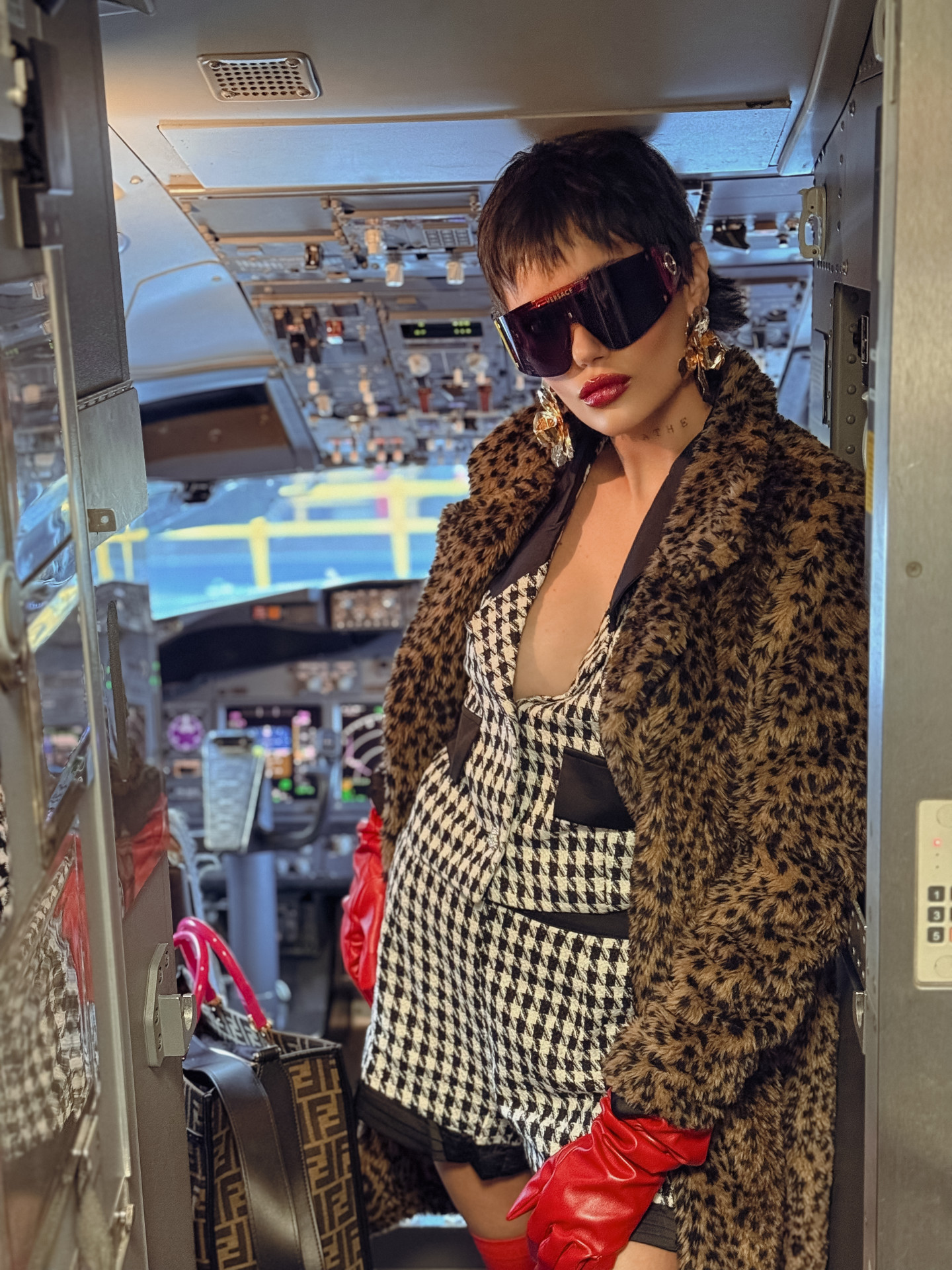 Short Tweed Pied Poule Preto E Off White
